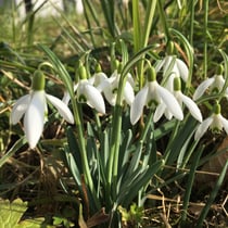 Galanthus nivalis (Schneeglöckchen), Corylus avellana (Hasel), Eranthis hyemalis (Winterling), Cornus mas (Kornelkirsche), Ranunculus ficaria (Scharbockskraut), Erophila verna (Frühlings-Hungerblümchen), Tussilago farfara (Huflattich), Ulmus glabra (Berg-Ulme)