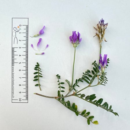 Mit dieser Merkmalskombination, Blätter unpaarig gefiedert, Blüten in Ähren (oder kopfartig gedrängten Trauben) und Flügel nicht kürzer als das Schiffchen kommen noch zwei Gattungen in Frage: Tragant (Astragalus) und Spitzkiel (Oxytropis). Um welche der beiden Gattungen es sich handelt, ist aber von aussen nicht sichtbar. Dazu muss man genauer hinschauen.