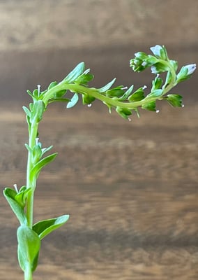 - Blüten weiss & blau geadert, in einer Traube am Ende des Stängels (endständige Traube)