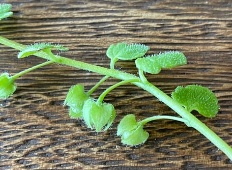 - Blätter rundlich bis nierenförmig, fein gezähnt