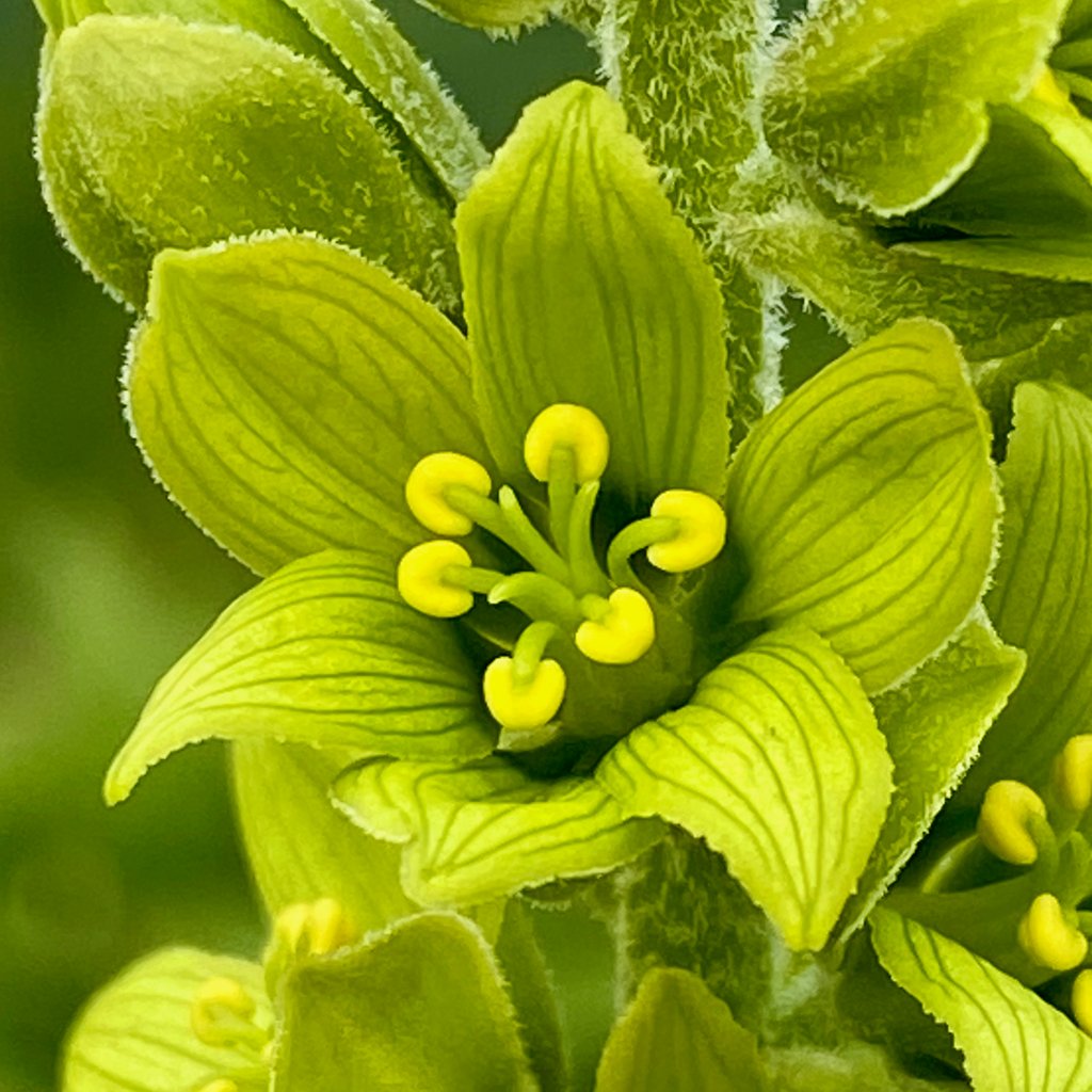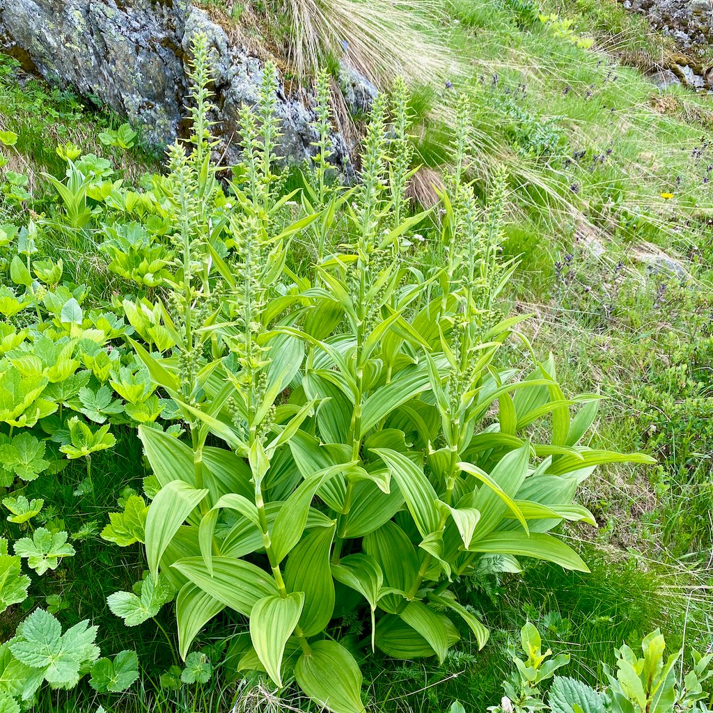 Meist sieht man nur seine Blätter, die dem Gelben Enzian sehr ähnlich sind. Nicht sonderlich spektakulär und zudem auch noch giftig. Wenn er aber blüht, dann entfaltet sich seine wahre Schönheit. Zu sehen sind dann 6 grünliche, mit dunklen Adern durchzogene Blütenblätter, 6 Staubblätter und 3 in der Mitte herausragende Griffel.