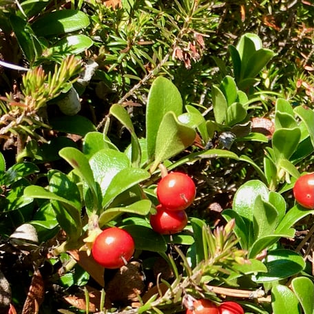 Alles klar? Du kannst die beiden Arten auch an ihrem Wuchs erkennen. Die Immergrüne Bärentraube ist ein Spalierstrauch, der ausgedehnte Teppiche bildet. Die Preiselbeere hingegen erscheint oberirdisch als einzelne Triebe.