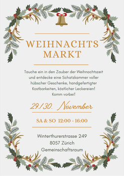 Wenn ihr mit uns direkt Fragen klären wollt, dann kommt beim Weihnachtsmarkt in Zürich Oerlikon am 29. und 30.11. vorbei. Siehe Flyer links.