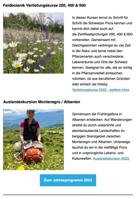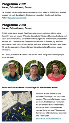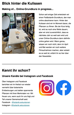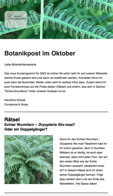 Anfang jeden Monats versenden wir eine Botanikpost mit einem Rätsel, Infos zu Kursen, botanischen Entdeckungen und mehr. Unten findest du ein Beispiel.